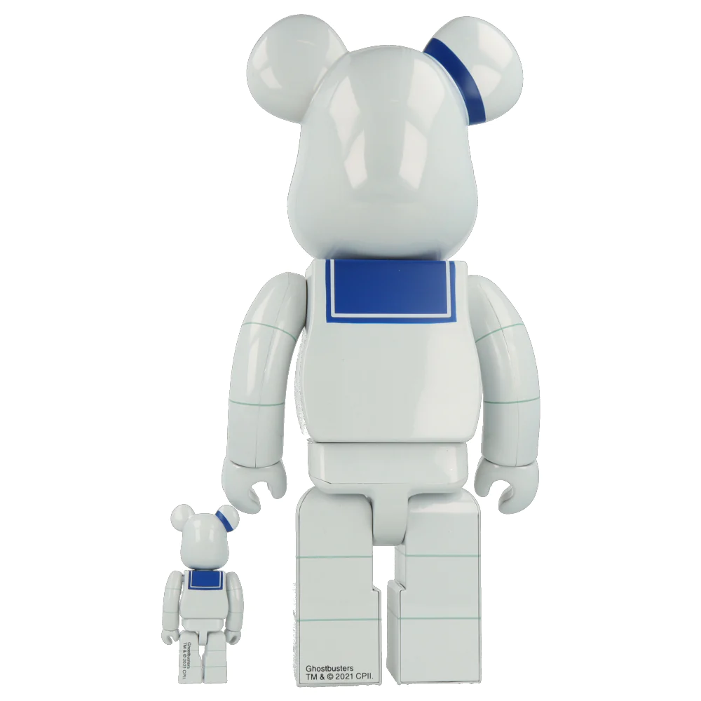 Dit is de Bearbrick 400% + 100% Stay Puft Marshmallow Man White Chrome