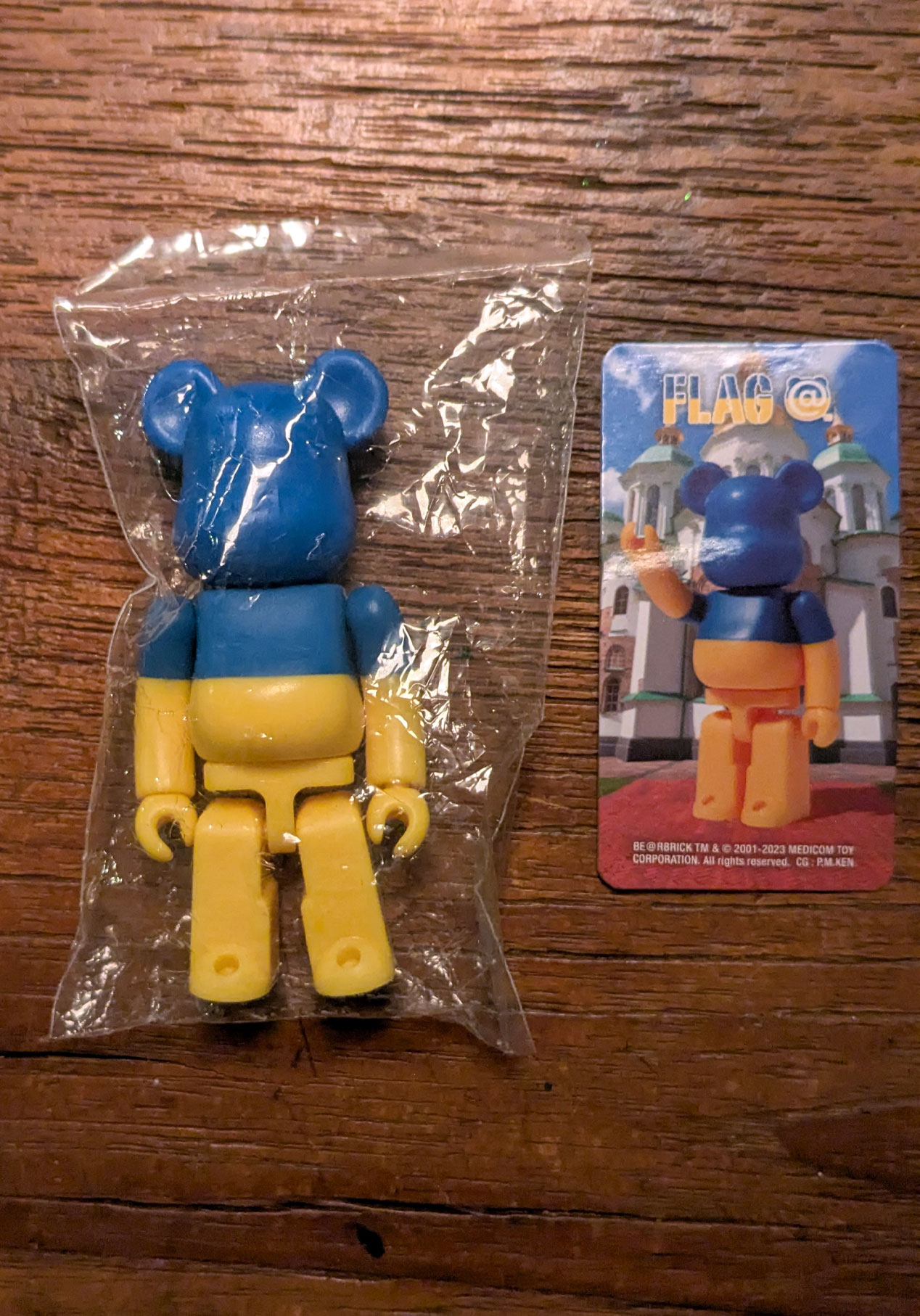 De nationale vlag van Oekraïne bestaat uit even grote horizontale banden van blauw en geel. Deze vlag maakt deel uit van het vlag genre in de Series 46 blind box release. “Liefde is groter dan haat, begrip is groter dan woede, vrede nobeler dan oorlog”, Hermann Hesse.